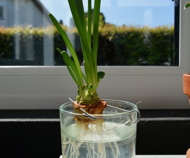 Hành tây rất dễ trồng, bạn chỉ cần một chiếc cốc thủy tinh chứa nước sạch và để phần rễ của củ hành tây chạm nước. Sau một thời gian, củ hành tây sẽ tự nảy mầm những chồi xanh, non trông vô cùng đẹp mắt. Bạn chỉ cần thay nước thường xuyên cho cây là cây sẽ phát triển đều và ổn định.