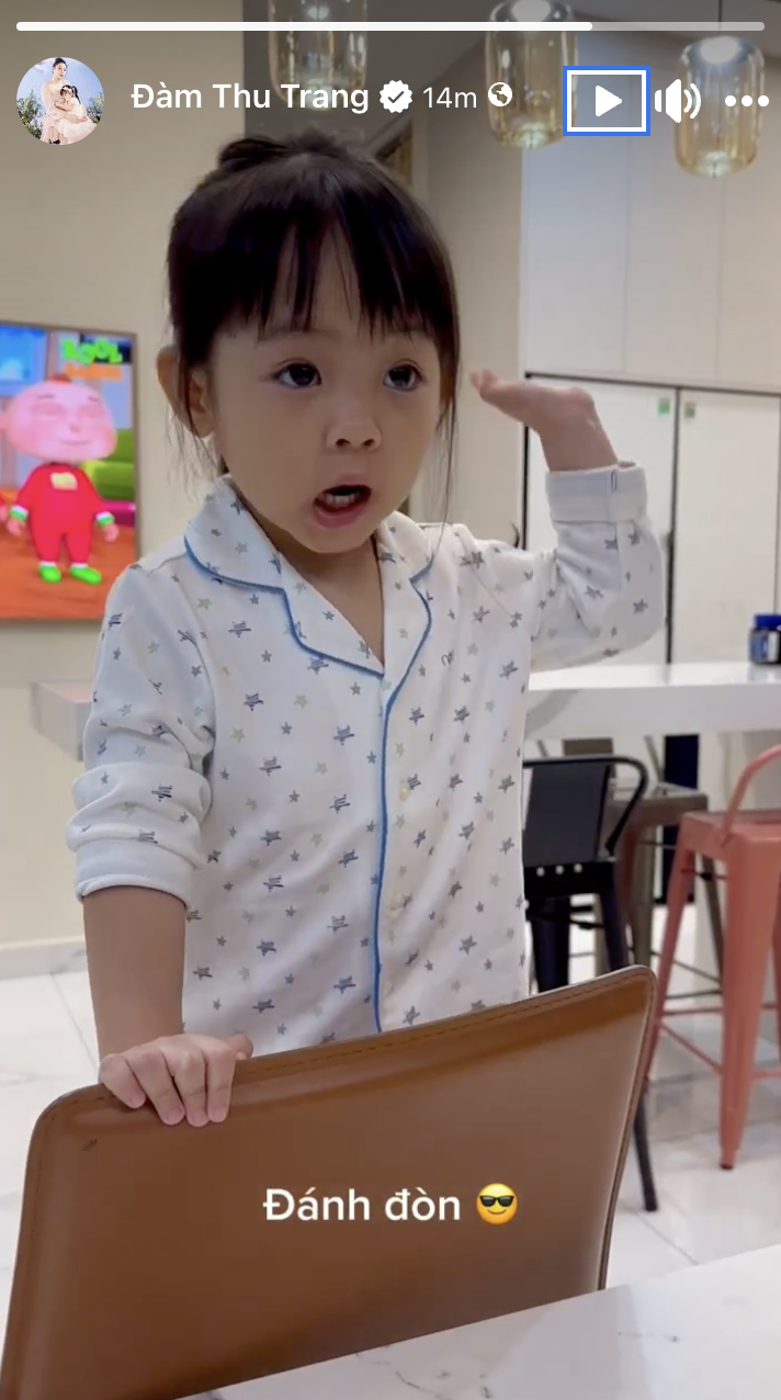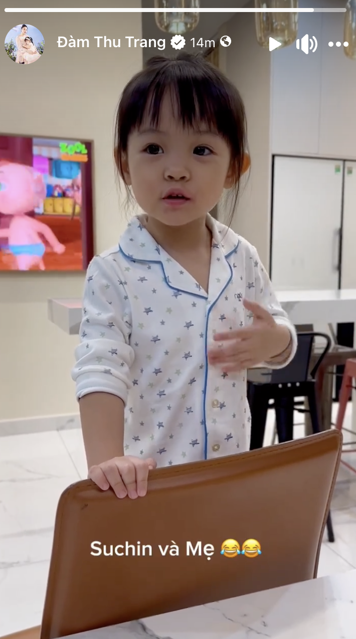 Mới đây, trên trang cá nhân, Đàm Thu Trang - bà xã Cường Đô La có đăng tải đoạn video ghi lại màn đối thoại cực dễ thương với con gái Suchin.