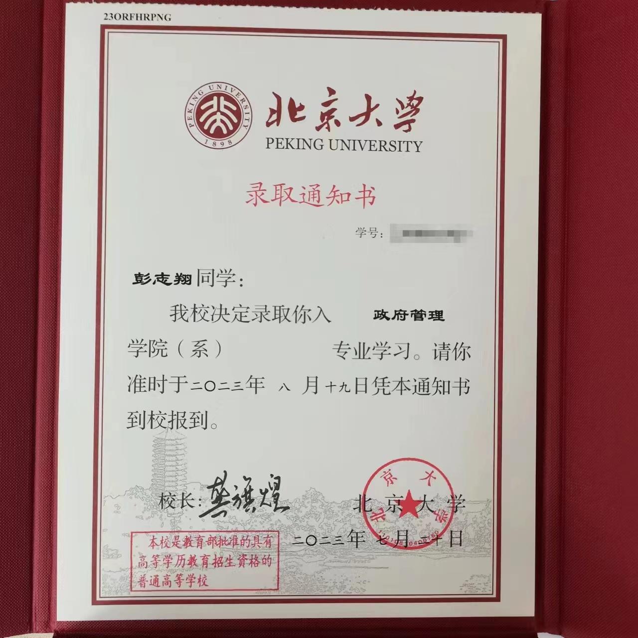 Thư trúng tuyển từ Đại học Bắc Kinh của Bành Chí Tường