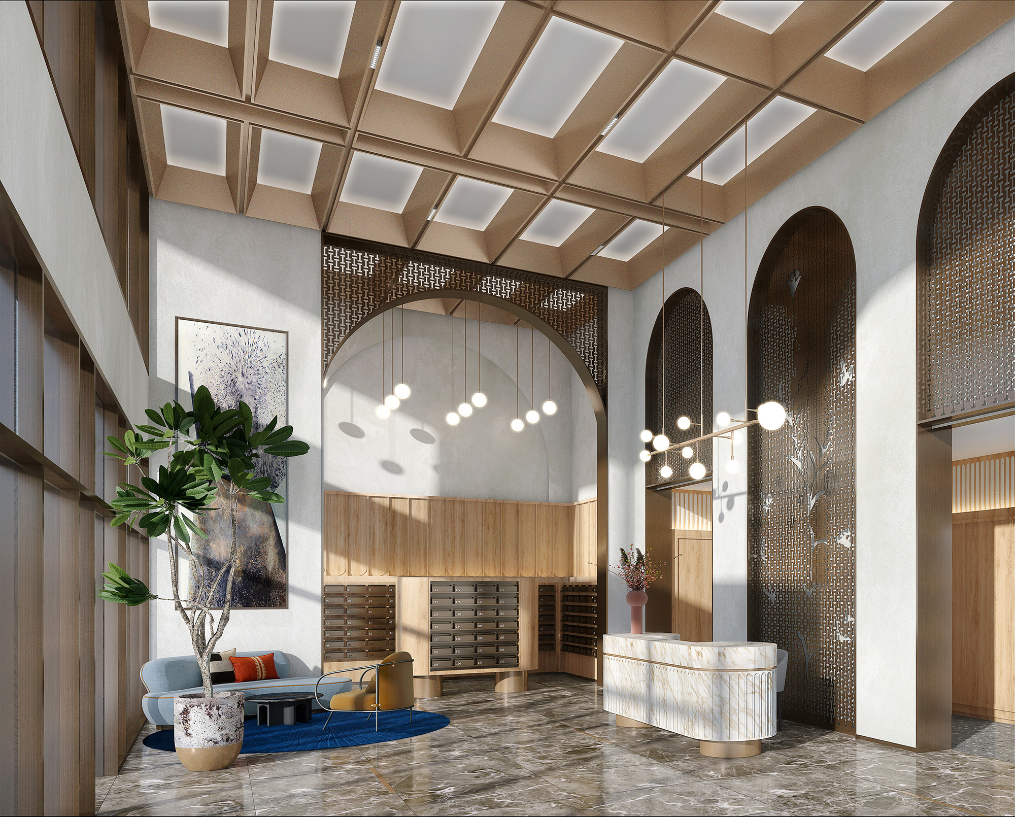Ngay từ không gian sảnh và hành lang trong từng toà tháp của Masteri Centre Point, Studio HBA đều giữ cho không gian đó hài hoà giữa phong cách kiến trúc hiện đại và phong cách kiến trúc Đông Dương. Đây được xem như một sự kết hợp tài tình nhằm mang đến cho cư dân một cuộc sống thời thượng, sang trọng và không kém phần hiện đại.