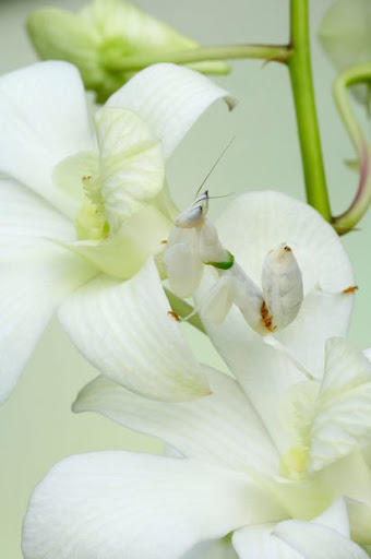 Con bọ ngựa trắng này như một bộ phận của đóa hoa lan.