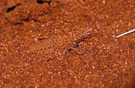 Con bọ nhảy này bảo vệ chính mình bằng màu sắc đỏ giống như lớp đất dưới chân nó.