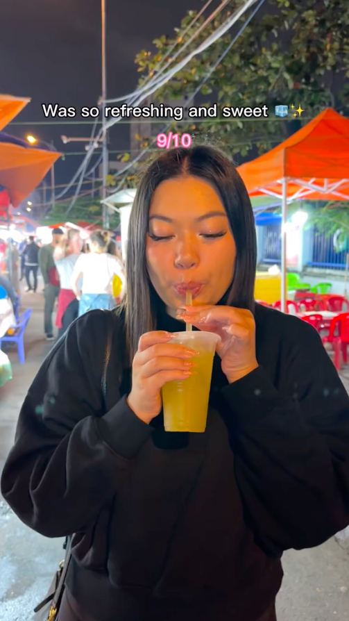 Chọn uống nước nước mía sau hai món tinh bột, cô nàng phấn khích chia sẻ thức uống này thật sự ngon ngọt và đã khát chỉ với 10.000đ.