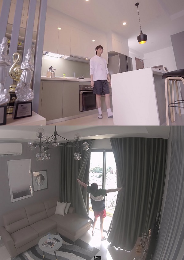 Căn chung cư cao cấp tại quận 7 của Sơn Tùng với màu xanh ghi làm chủ đạo.
