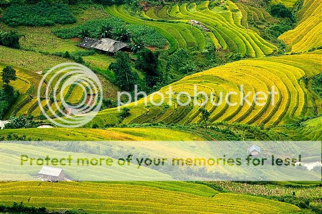 Khung cảnh nhìn từ đèo Khau Phạ đẹp nhất vào mùa lúa chín, tầm tháng 9 tháng 10, khi lúa trên chân ruộng bậc thang Tú Lệ chín vàng. Đây là thời điểm mà nhiều khách du lịch mạo hiểm chinh phục đèo để ngoạn cảnh. Ảnh: Haikeu