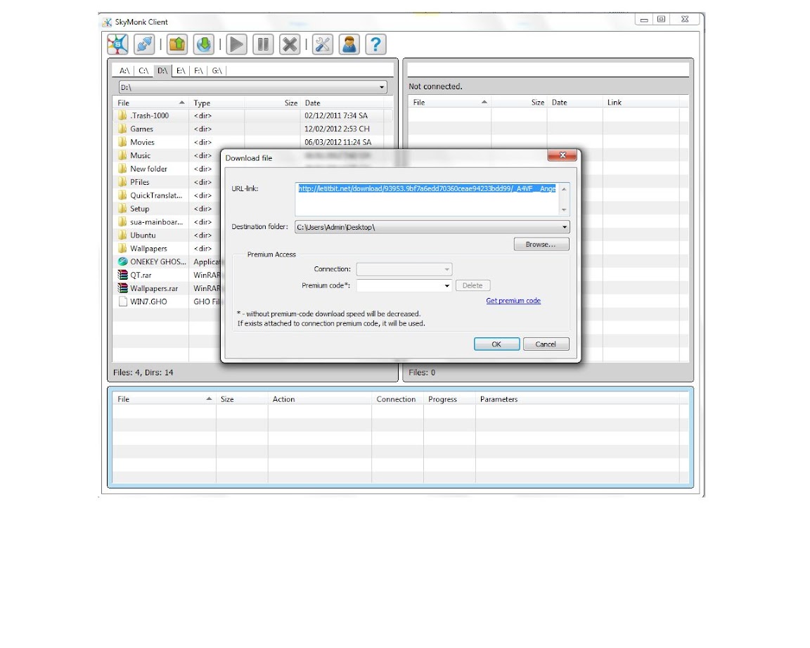 Sau đó sẽ xuất hiện hộp thoại mới như hình trên.Bạn paste link cần down vào ô URL-link rồi ok là xong.
