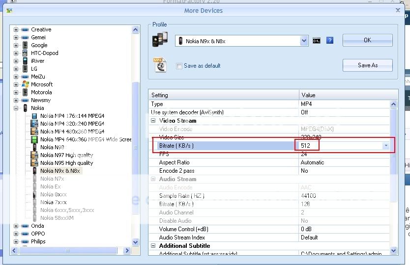 Dòng Bitrate các bạn chọn 512 để chất lượng phim cao hơn