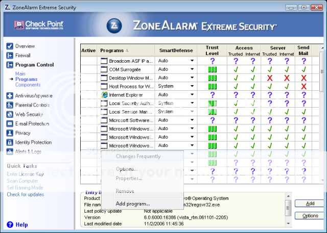 System Requirements for ZoneAlarm Extreme Security: